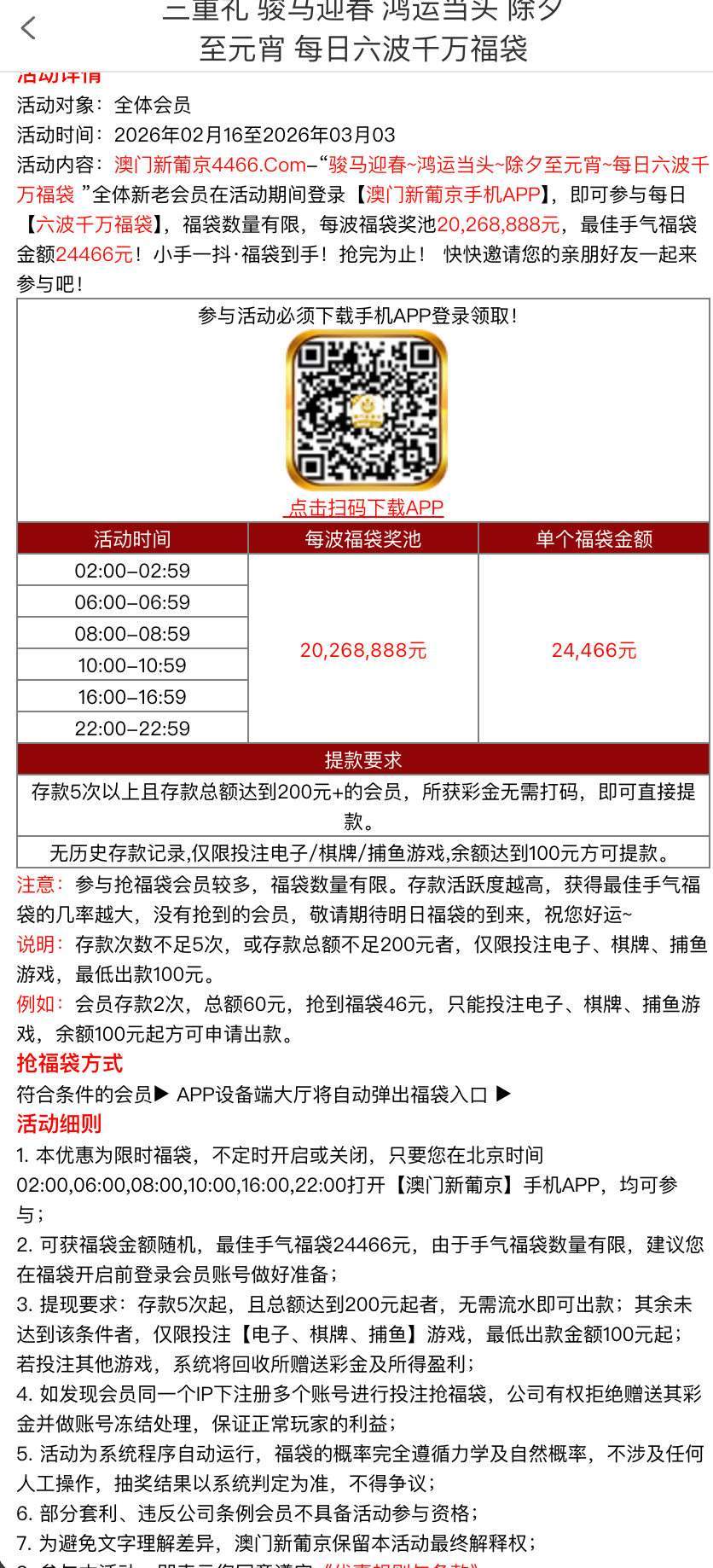 【澳门新葡京】每日三波千万福利红包免费领取,最高可获14466元