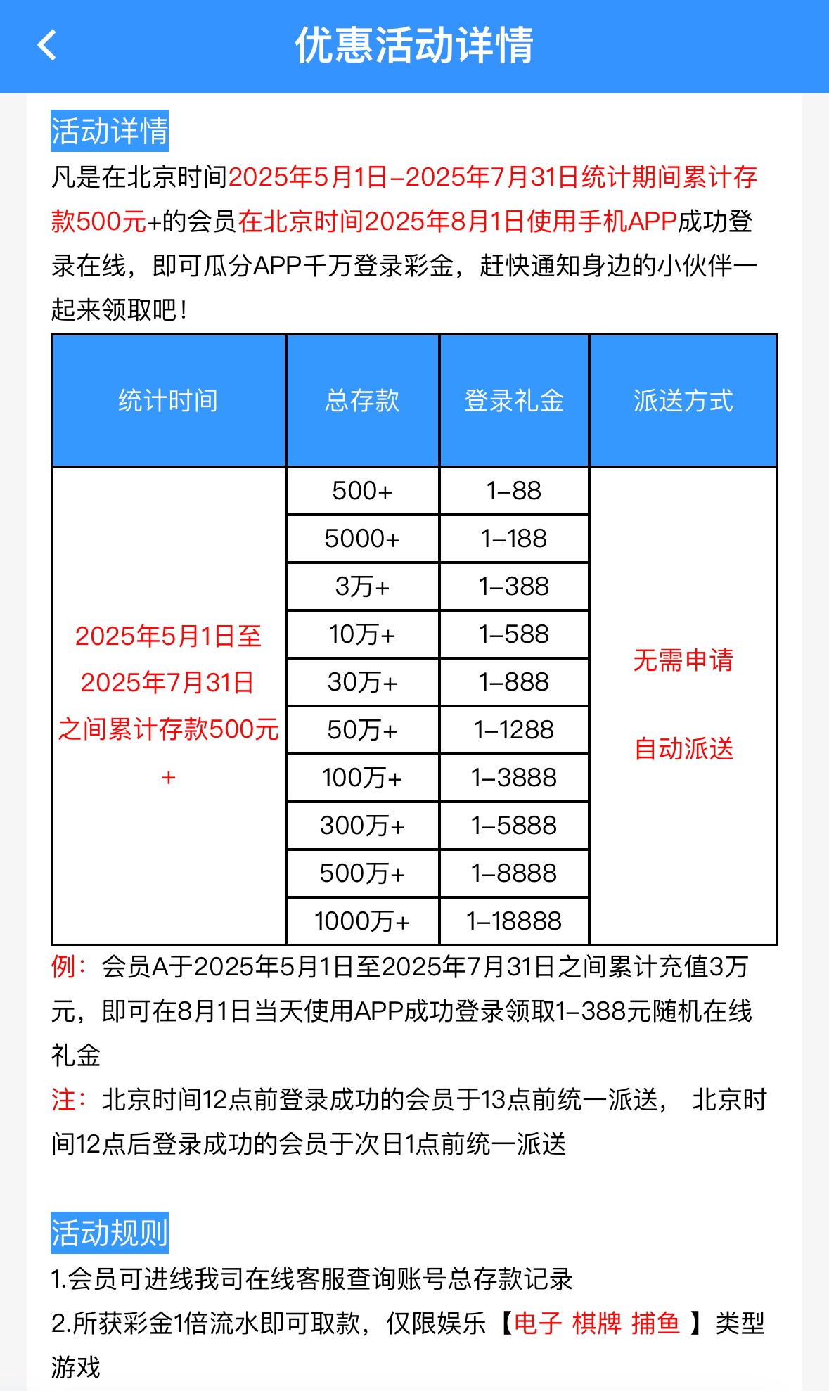 近两个月总存款500以上的兄弟可以下载APP登入上去领一下彩金
