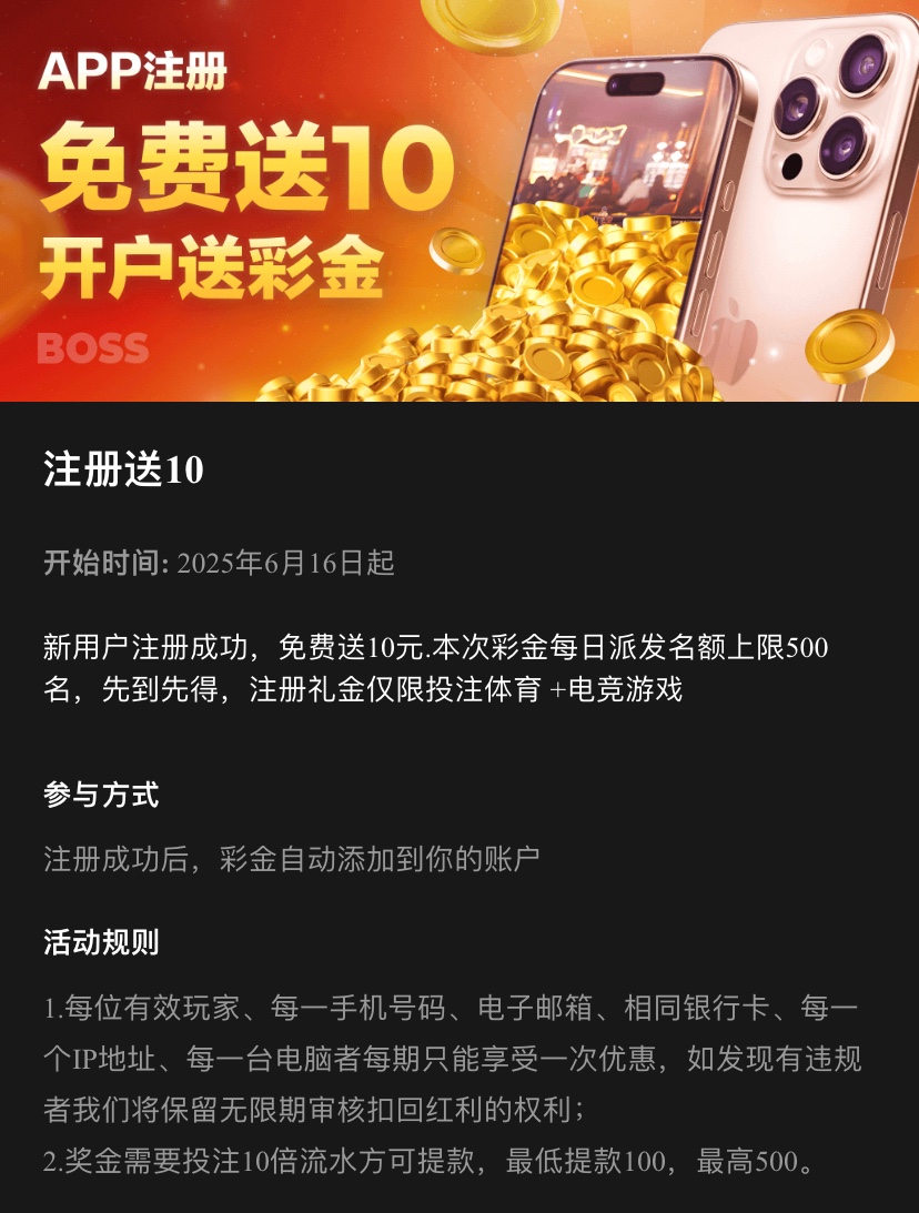 【BOSS体育】—✅—注册送10彩金