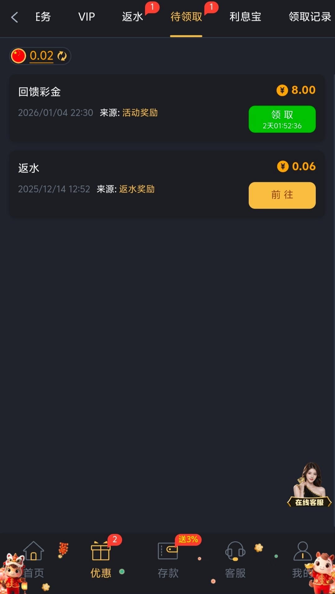 近期有充值过的兄弟可以登入上看看优惠可以有没有回馈