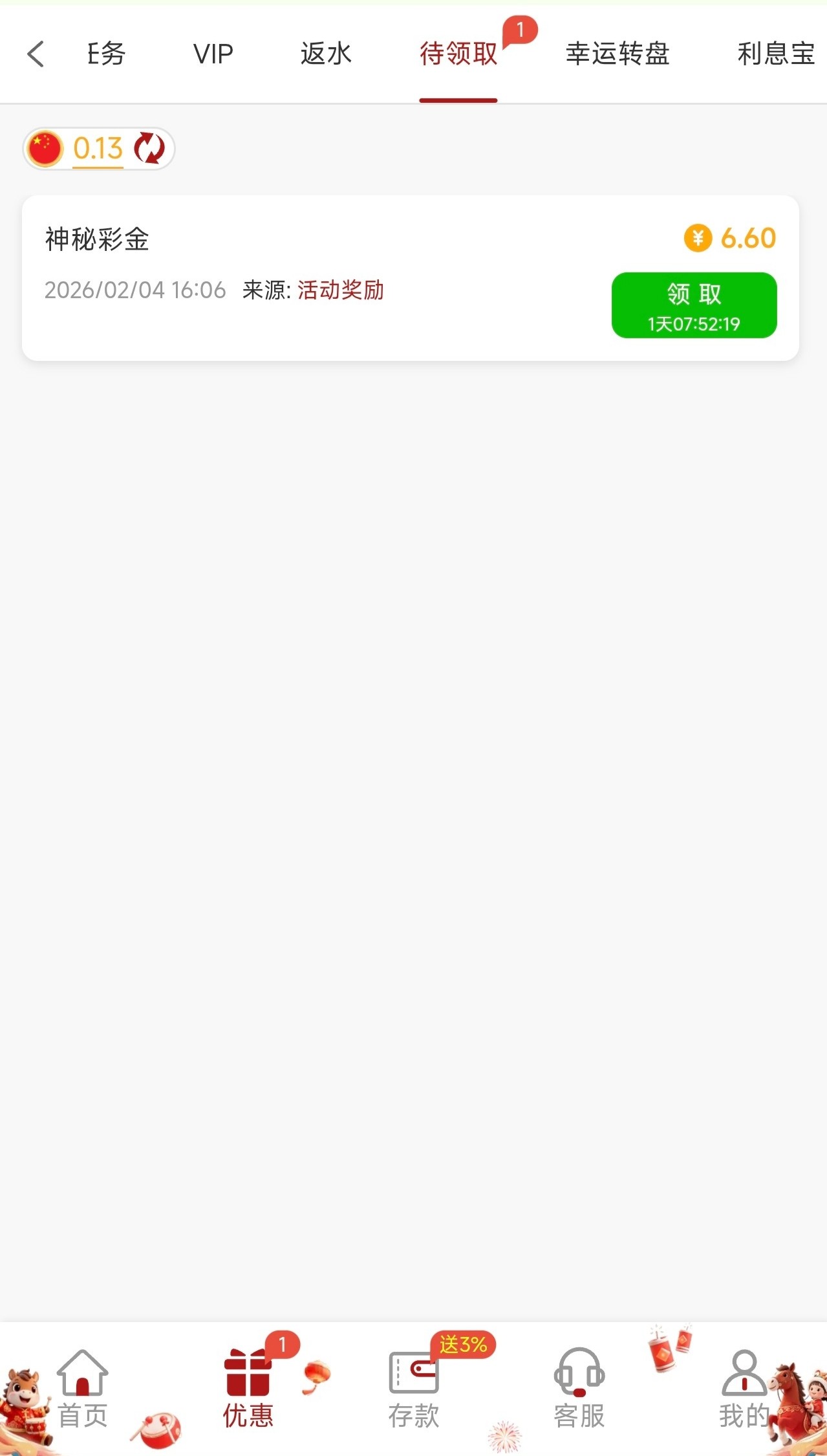 要在平台有充值记录才有