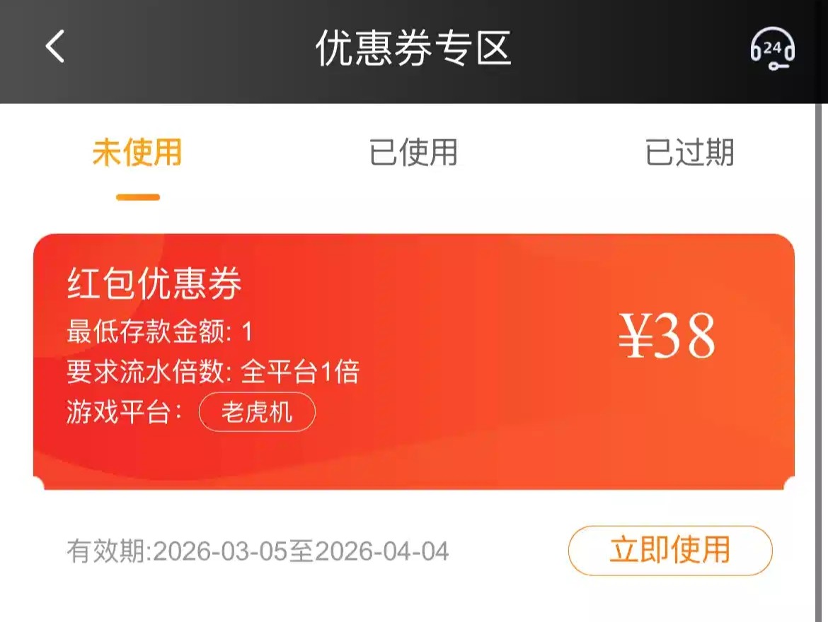 新人无视,有号可以看一下自己有没有收到此红包优惠劵,要最低1元存款,一倍流水,出款碰运气